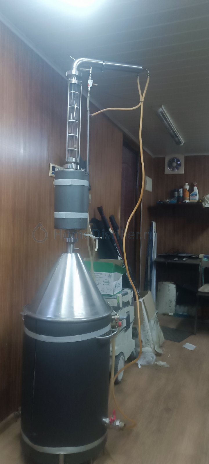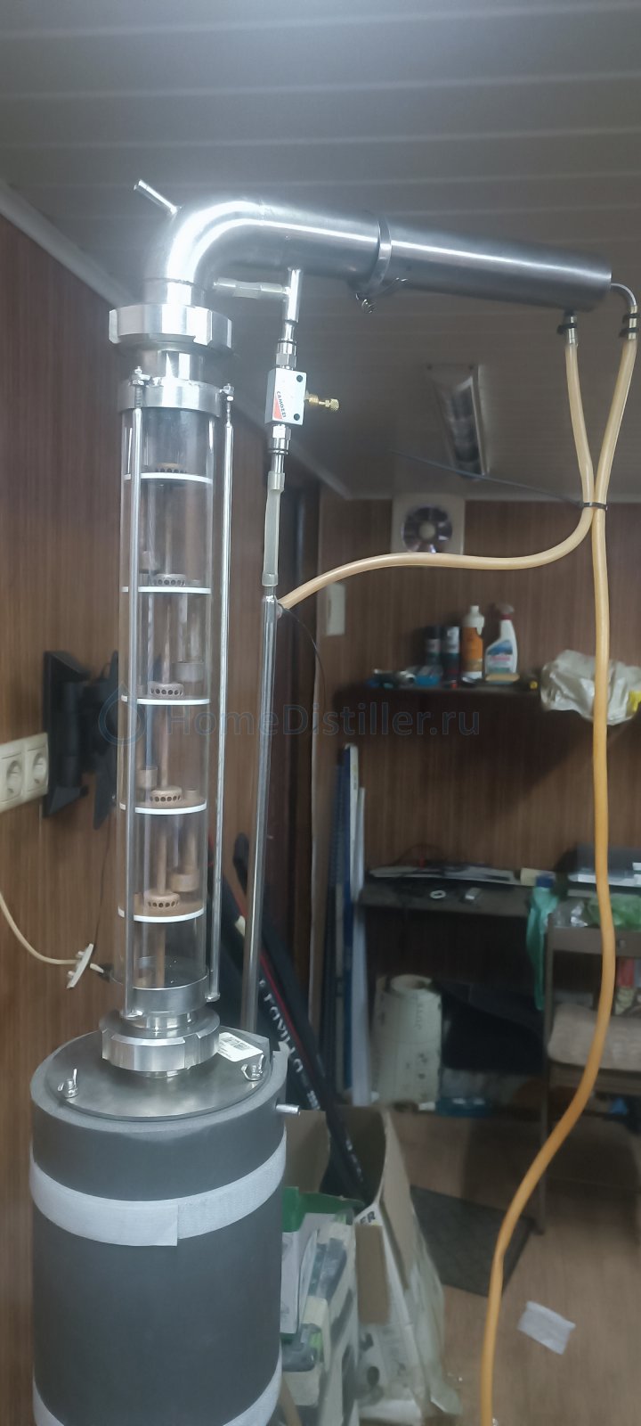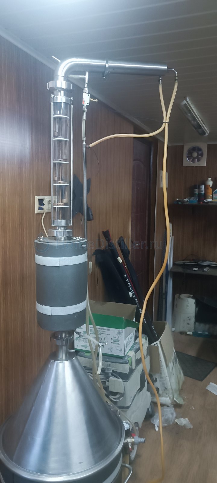 Продается полный комплект для дистилляции ХД-3. В комплект входит: 1) ПВК-50 л., с хомутом и прокладкой для крышки, установлен ТЭН на 3кВ. 2) Конусная крышка 3) Кожухотрубный дистиллятор ХД/3-6000 4) Польский буфер 3л. 5) Колпачковая колонна с медной вставкой, 5 тарелок 6) Дефлегматор серии ХД/3 с малым прямоточным холодильником и игольчатым краном регулировки отбора 7) Автоматика HelloDistiller