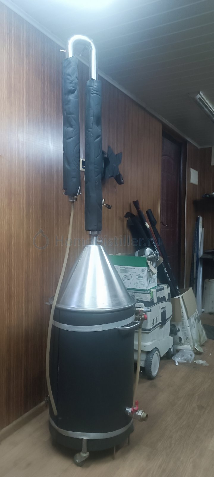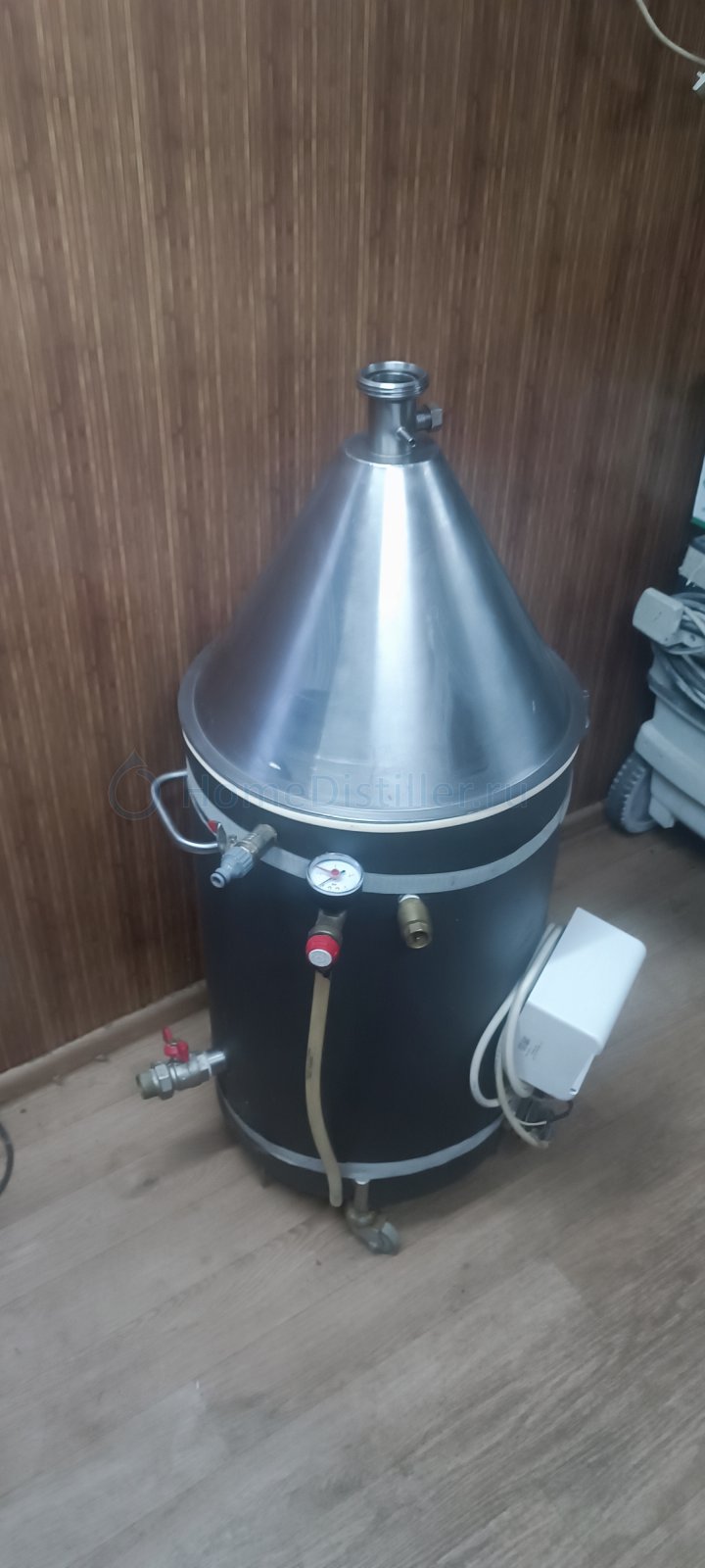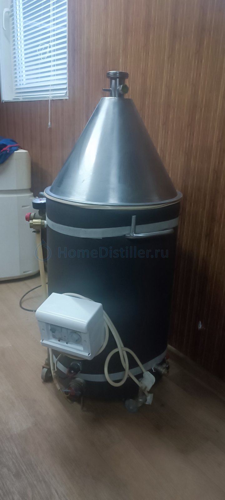 Продается полный комплект для дистилляции ХД-3. В комплект входит: 1) ПВК-50 л., с хомутом и прокладкой для крышки, установлен ТЭН на 3кВ. 2) Конусная крышка 3) Кожухотрубный дистиллятор ХД/3-6000 4) Польский буфер 3л. 5) Колпачковая колонна с медной вставкой, 5 тарелок 6) Дефлегматор серии ХД/3 с малым прямоточным холодильником и игольчатым краном регулировки отбора 7) Автоматика HelloDistiller